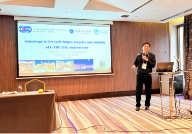 陈野风博士报告了题为“Anisotropy in low cycle fatigue and reliability of L-PBF 316L stainless steel”的研究,从可靠性维度分析增材制造不锈钢在核电关键领域应用的安全边界,详细介绍了我校在金属增材制造及结构强度评估的重大研究进展。博士生夏文凤在喻九阳教授的指导下,以“Lightweight and High-Precision Balanced Defect Detection Technology for Metal Pipe Welds”为题,针对金属管道环焊缝多尺度缺陷检测中轻量化与精度难以兼顾的问题,提出了一种深度学习模型的结构优化策略,可有效适配工业场景中管道焊缝缺陷检测的实际需求。博士生潘凌峰经郑小涛教授指导,以“Accelerated Degradation of 316LN under Stress-assisted Corrosion in Oxygen-Saturated Liquid Sodium”为题,展示了316LN在钠腐蚀-应力耦合作用条件下的腐蚀及力学行为,初步阐明了316LN在钠腐蚀-应力耦合作用条件下的腐蚀及力学机制。