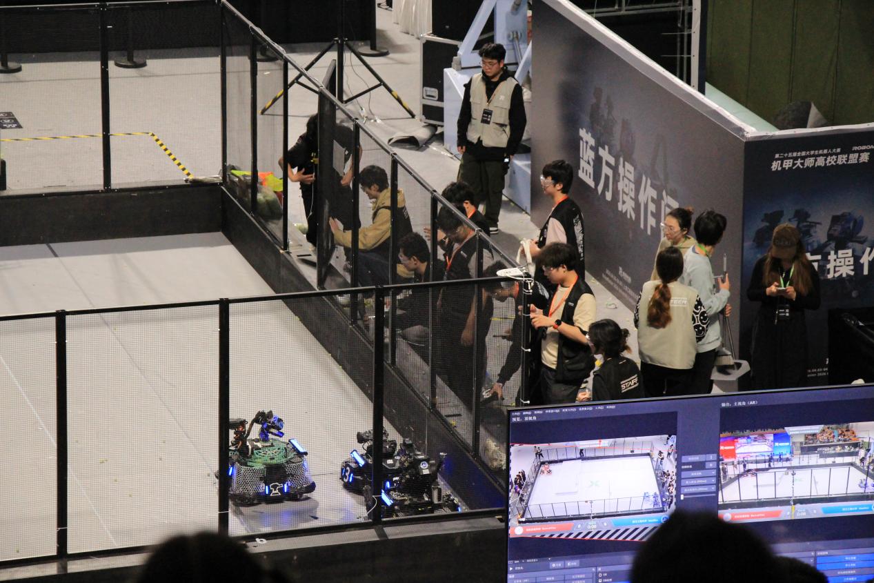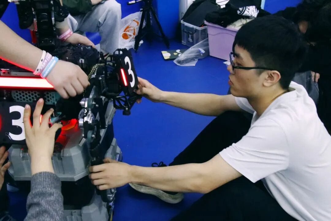 本次上海站赛事吸引了上海交通大学、复旦大学、同济大学、华东理工大学等30所高校300多名师生同台竞技。Nautilus(鹦鹉螺)机甲战队在创新创业学院张聪,机电工程学院肖伟、杨星等老师的共同指导下,从2025年10月便启动全面备赛,团队所有成员寒假期间一直专注于机器人硬件迭代、电控算法调试、操作手实战训练、赛场战术推演等全流程准备,持续打磨设备稳定性与团队配合度,以最佳状态迎战各路强队。