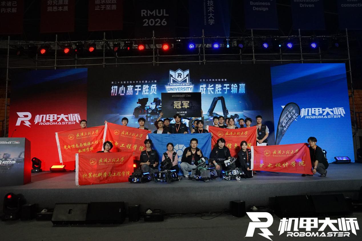 (通讯员 杨星)4月1日至5日,RoboMaster2026机甲大师高校联盟赛(上海站)在上海工程技术大学圆满落幕。武汉工程大学Nautilus(鹦鹉螺)战队以全程强势表现摘得3V3对抗赛冠军,创下我校在该赛事的历史最佳战绩。