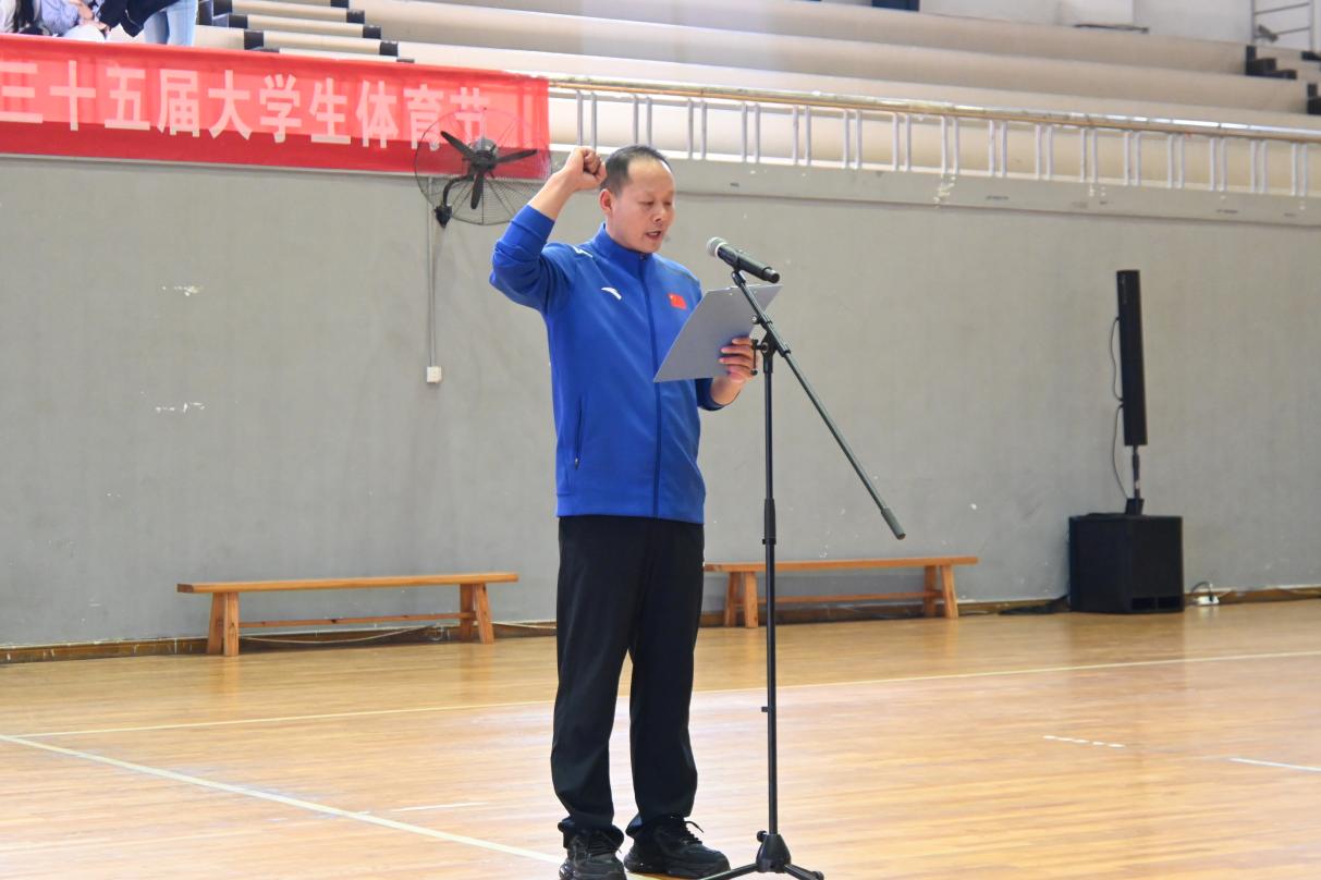 李志旭代表学校党委对本届体育节的开幕表示热烈祝贺,他指出,体育是强国兴邦的重要基石,更是立德树人的关键载体,学校始终坚持“健康第一”教育理念,将体育工作全面融入“五育并举”人才培养体系,持续丰富校园体育文化,引导广大青年走下网络、走出宿舍、走向操场,在运动中强健体魄、健全人格、锤炼意志。他强调:一是以体铸魂,厚植家国情怀。把竞技场上的每一次冲刺、每一次拼搏,转化为爱国报国的实际行动,以青年担当诠释家国情怀;二是以体砺志,锤炼坚韧品格。树立终身锻炼意识,在体育运动中磨砺意志、砥砺品格,以强健体魄与坚毅心态直面成长挑战;三是以体赋能,涵养综合素养。主动参与体育活动,在协作中学会包容,在竞争中收获成长,努力成为德智体美劳全面发展的时代新人。